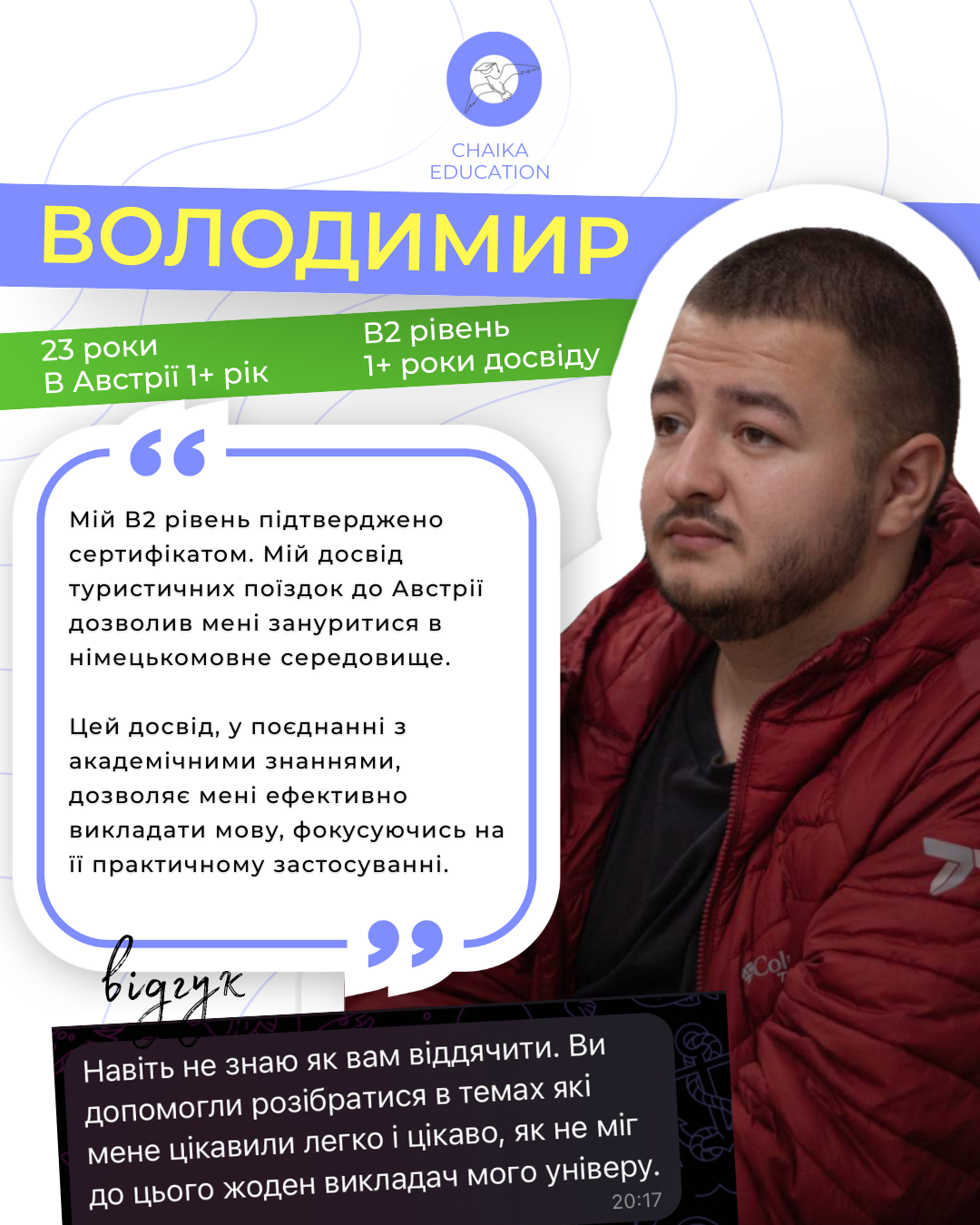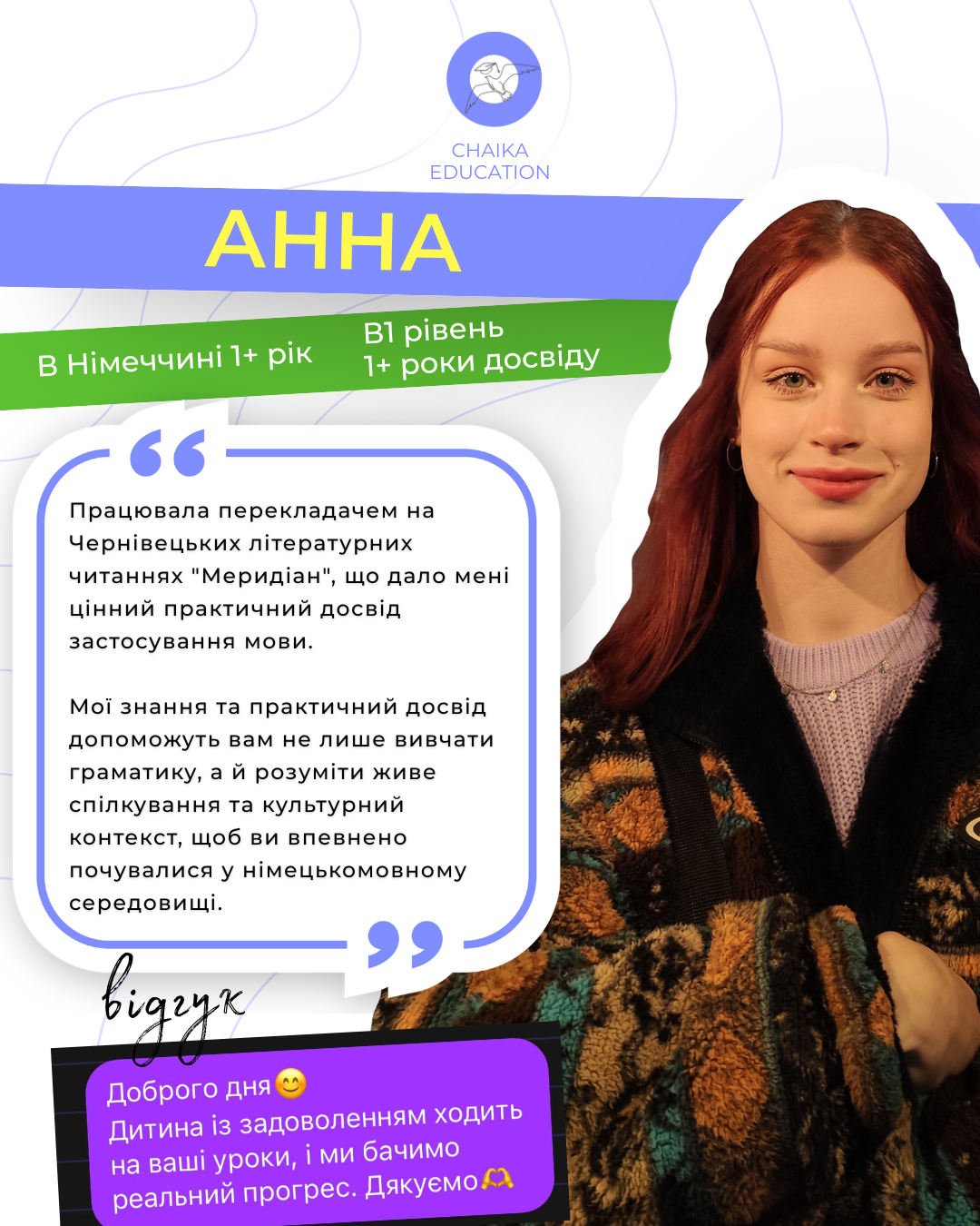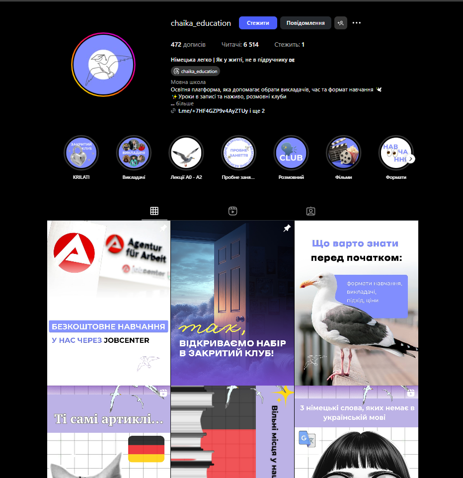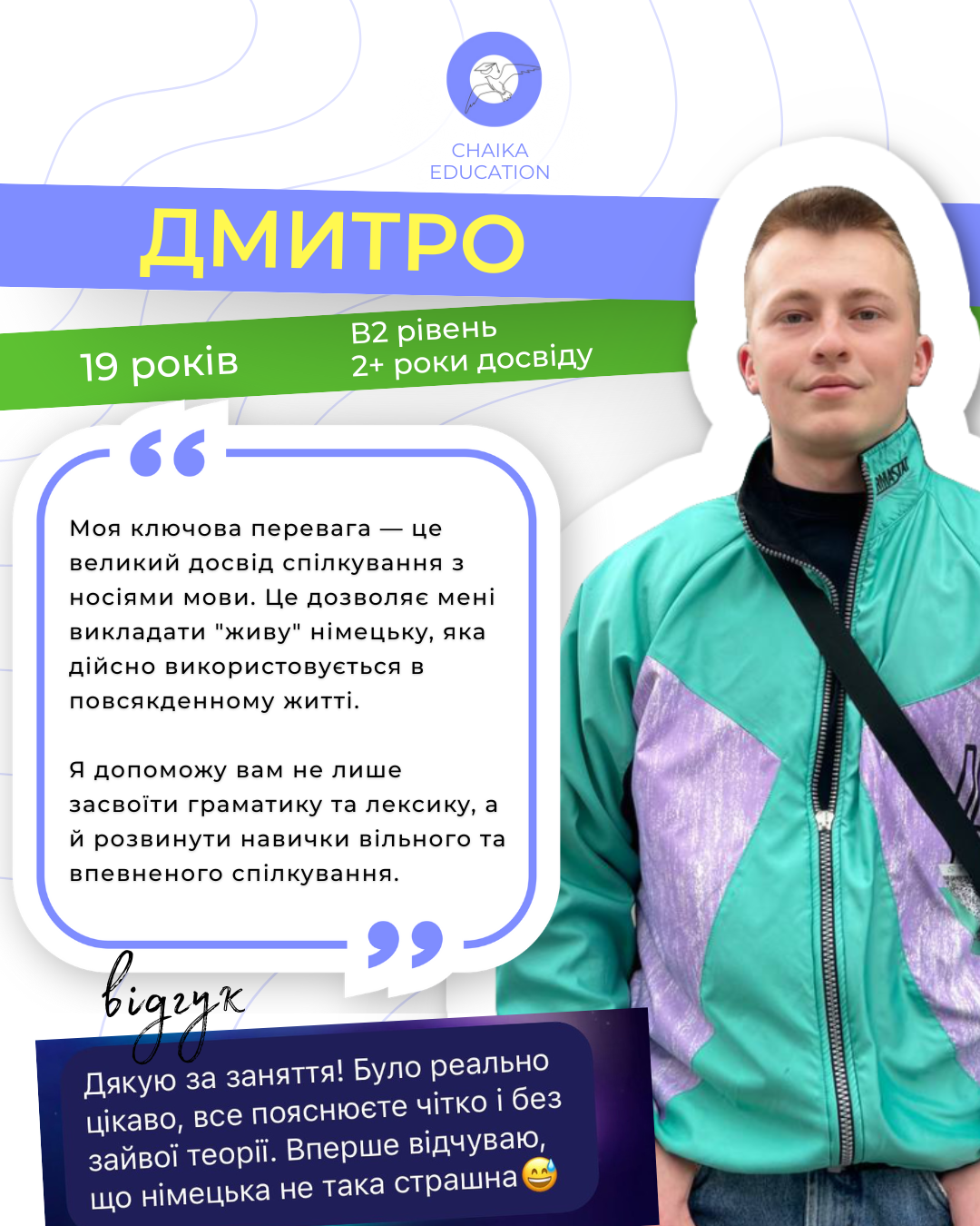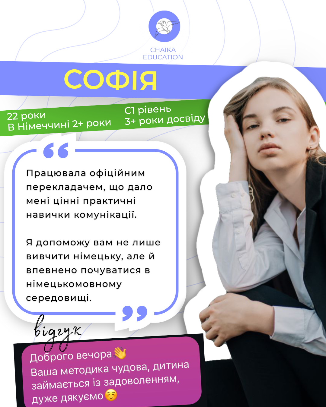 • Chaika Education — це онлайн-простір, де німецька мова стає не сухою теорією, а вашим реальним інструментом для життя, роботи й навчання.